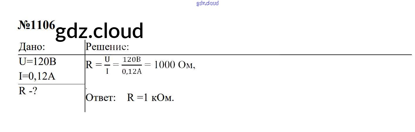 Ответ на задание 1106 Сборник задач Физика за 7, 8, 9 (седьмой, восьмой, девятый) класс Перышкин, Лонцова УМК 2016