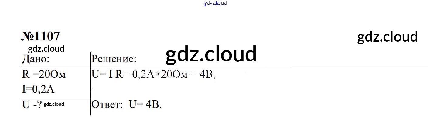 Ответ на задание 1107 Сборник задач Физика за 7, 8, 9 (седьмой, восьмой, девятый) класс Перышкин, Лонцова УМК 2016