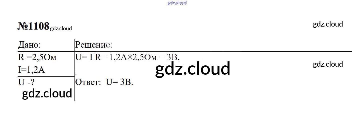 Ответ на задание 1108 Сборник задач Физика за 7, 8, 9 (седьмой, восьмой, девятый) класс Перышкин, Лонцова УМК 2016