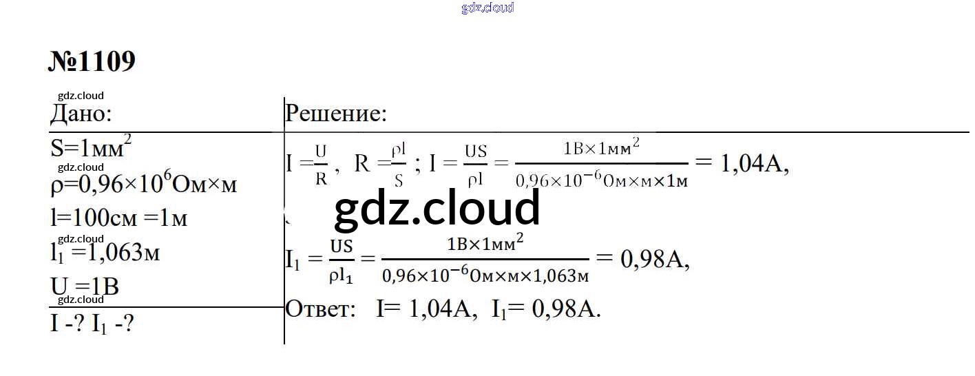 Ответ на задание 1109 Сборник задач Физика за 7, 8, 9 (седьмой, восьмой, девятый) класс Перышкин, Лонцова УМК 2016