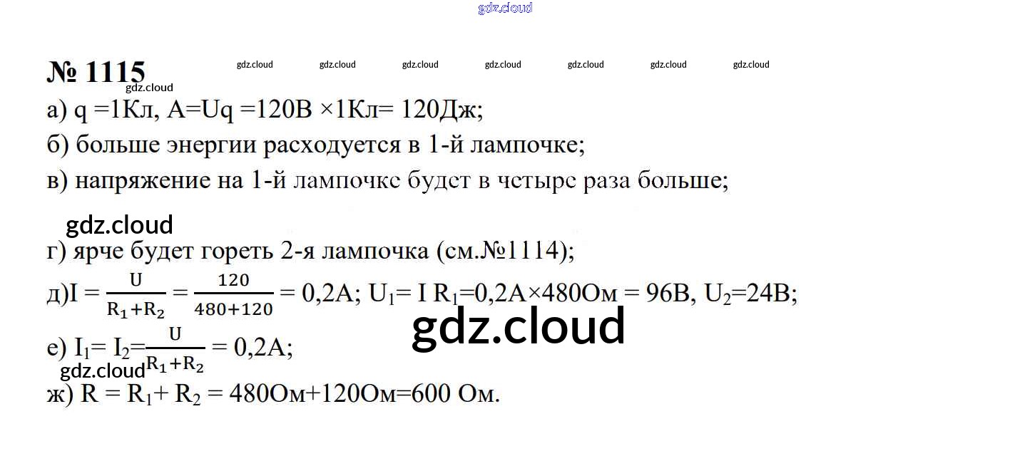 Ответ на задание 1115 Сборник задач Физика за 7, 8, 9 (седьмой, восьмой, девятый) класс Перышкин, Лонцова УМК 2016