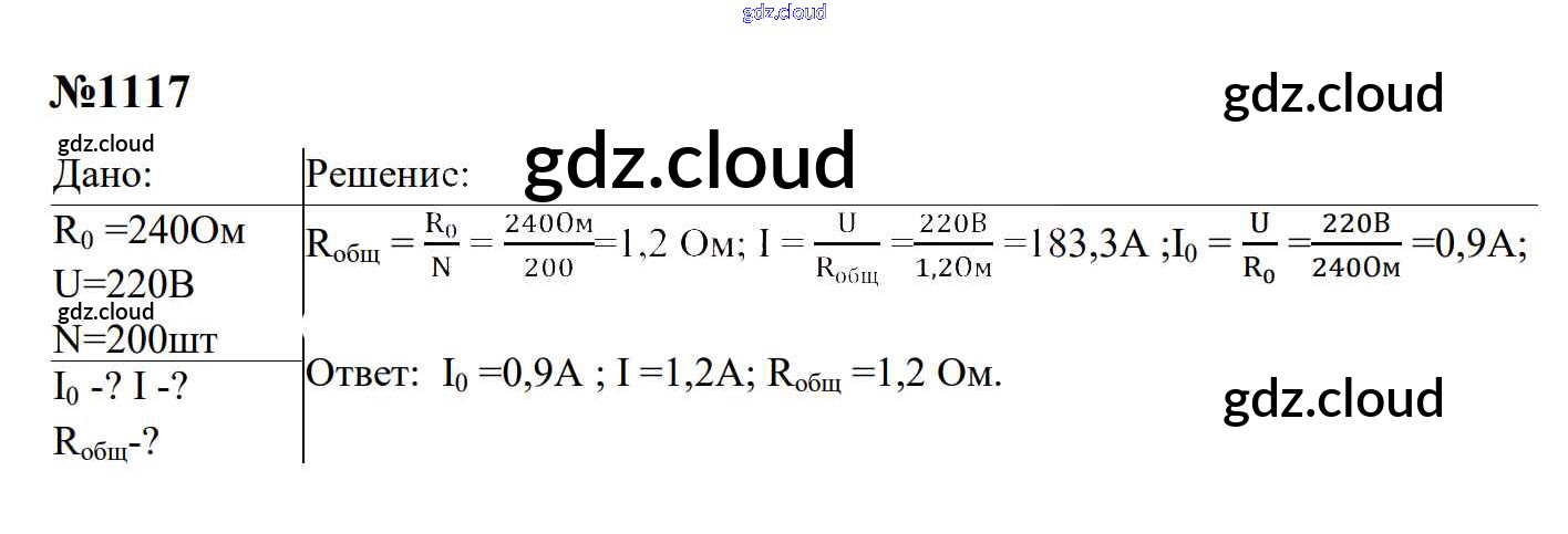 Ответ на задание 1117 Сборник задач Физика за 7, 8, 9 (седьмой, восьмой, девятый) класс Перышкин, Лонцова УМК 2016