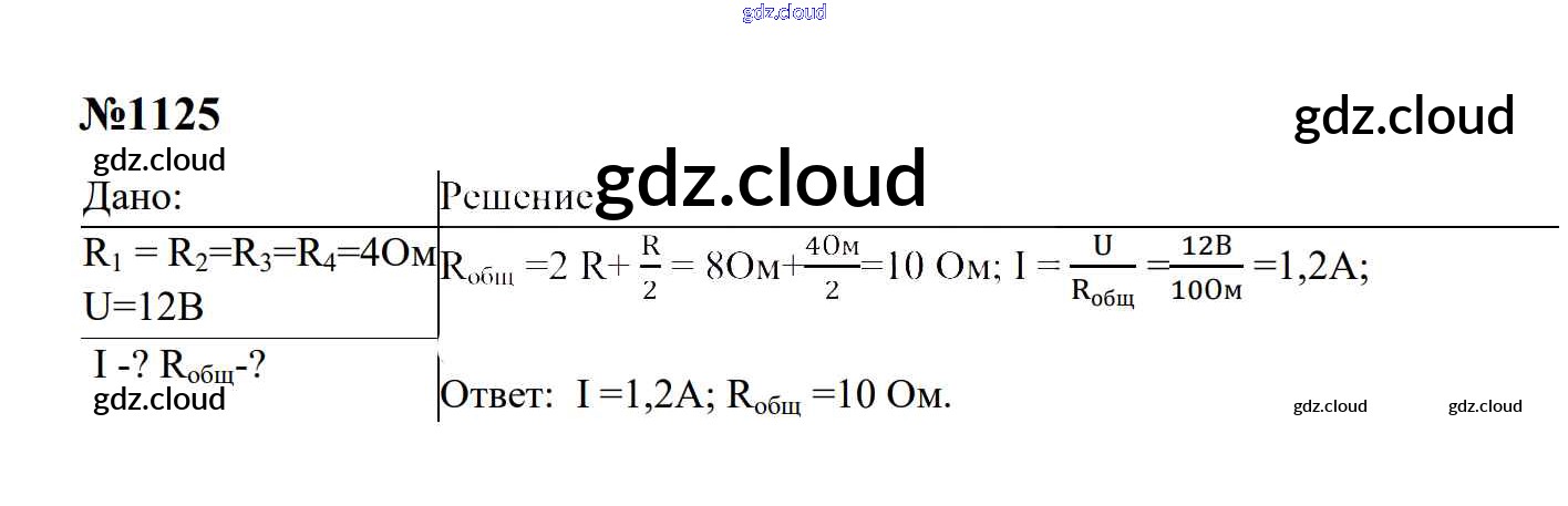 Ответ на задание 1125 Сборник задач Физика за 7, 8, 9 (седьмой, восьмой, девятый) класс Перышкин, Лонцова УМК 2016