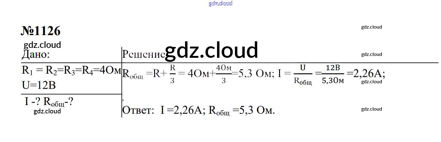 Ответ на задание 1126 Сборник задач Физика за 7, 8, 9 (седьмой, восьмой, девятый) класс Перышкин, Лонцова УМК 2016