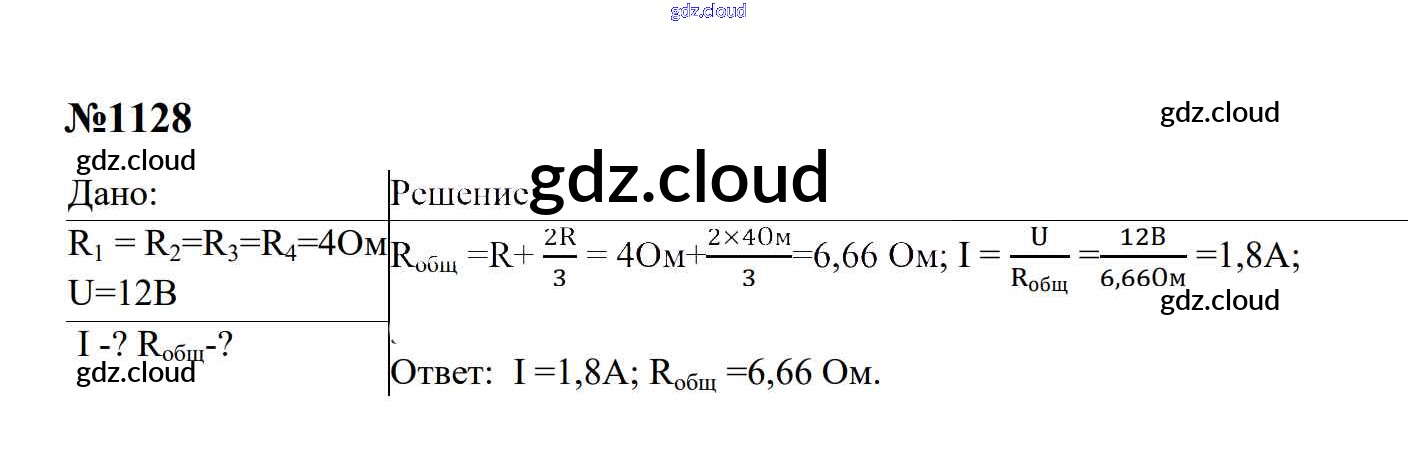 Ответ на задание 1128 Сборник задач Физика за 7, 8, 9 (седьмой, восьмой, девятый) класс Перышкин, Лонцова УМК 2016