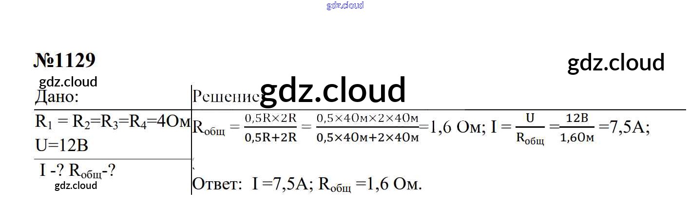 Ответ на задание 1129 Сборник задач Физика за 7, 8, 9 (седьмой, восьмой, девятый) класс Перышкин, Лонцова УМК 2016