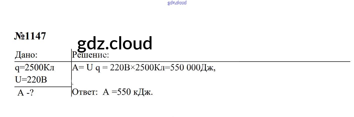 Ответ на задание 1147 Сборник задач Физика за 7, 8, 9 (седьмой, восьмой, девятый) класс Перышкин, Лонцова УМК 2016