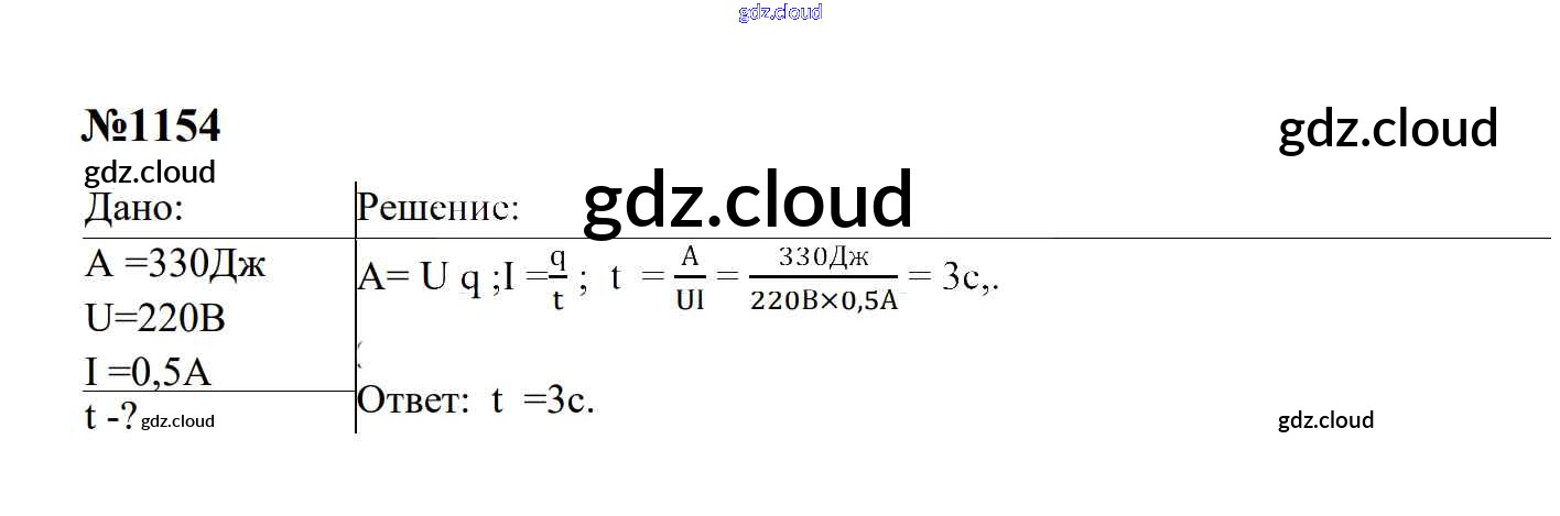 Ответ на задание 1154 Сборник задач Физика за 7, 8, 9 (седьмой, восьмой, девятый) класс Перышкин, Лонцова УМК 2016