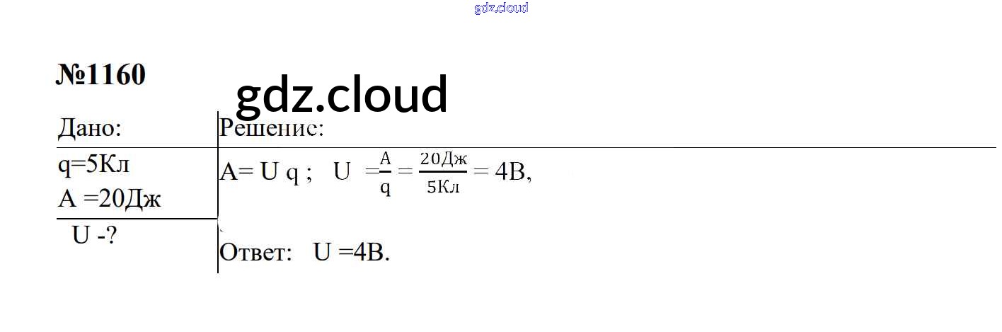 Ответ на задание 1160 Сборник задач Физика за 7, 8, 9 (седьмой, восьмой, девятый) класс Перышкин, Лонцова УМК 2016