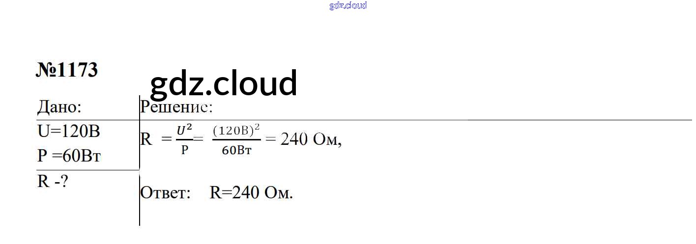 Ответ на задание 1173 Сборник задач Физика за 7, 8, 9 (седьмой, восьмой, девятый) класс Перышкин, Лонцова УМК 2016