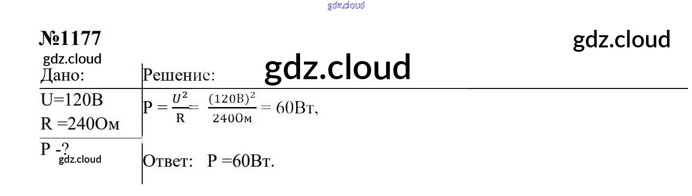 Ответ на задание 1177 Сборник задач Физика за 7, 8, 9 (седьмой, восьмой, девятый) класс Перышкин, Лонцова УМК 2016