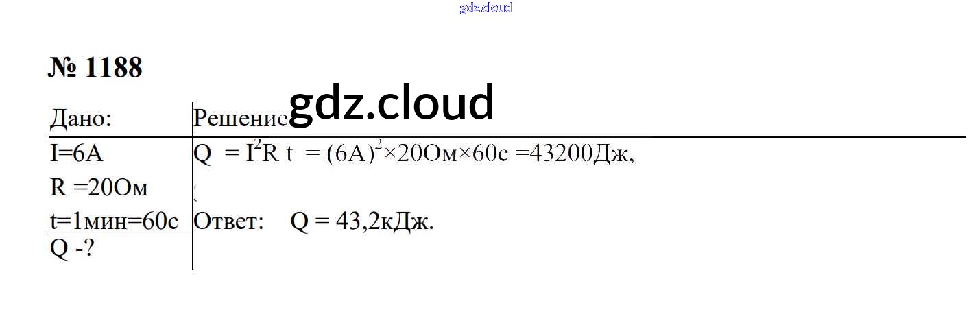 Ответ на задание 1188 Сборник задач Физика за 7, 8, 9 (седьмой, восьмой, девятый) класс Перышкин, Лонцова УМК 2016