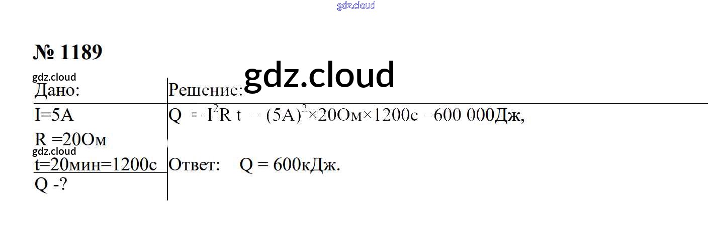 Ответ на задание 1189 Сборник задач Физика за 7, 8, 9 (седьмой, восьмой, девятый) класс Перышкин, Лонцова УМК 2016