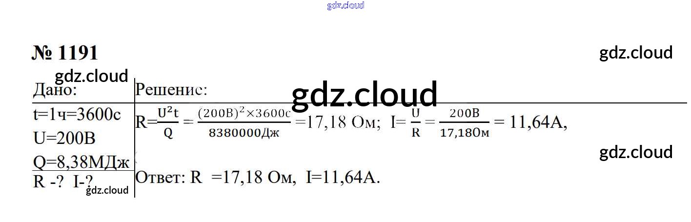 Ответ на задание 1191 Сборник задач Физика за 7, 8, 9 (седьмой, восьмой, девятый) класс Перышкин, Лонцова УМК 2016