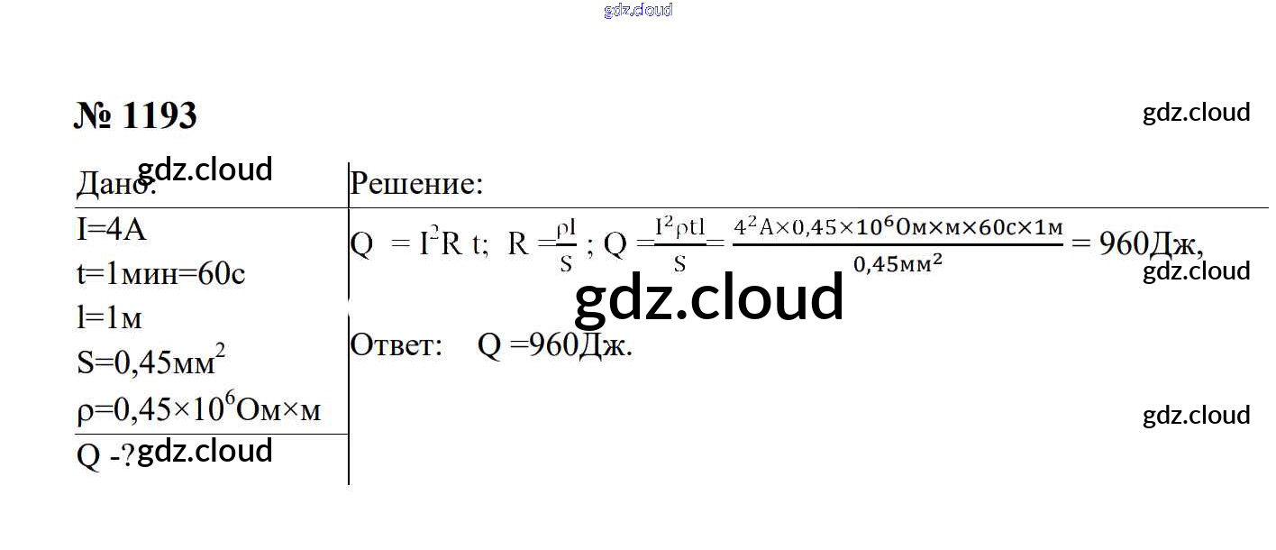Ответ на задание 1193 Сборник задач Физика за 7, 8, 9 (седьмой, восьмой, девятый) класс Перышкин, Лонцова УМК 2016