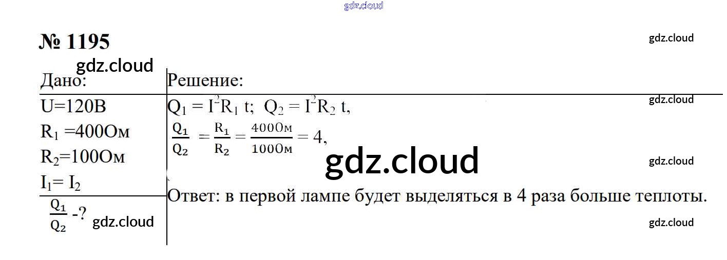 Ответ на задание 1195 Сборник задач Физика за 7, 8, 9 (седьмой, восьмой, девятый) класс Перышкин, Лонцова УМК 2016