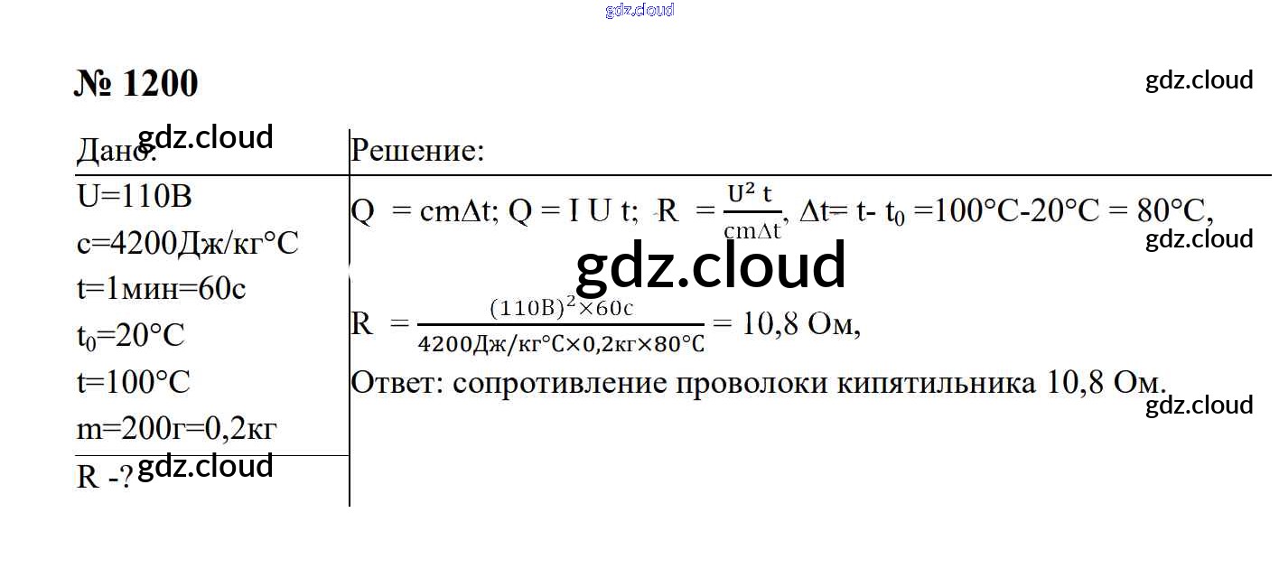 Ответ на задание 1200 Сборник задач Физика за 7, 8, 9 (седьмой, восьмой, девятый) класс Перышкин, Лонцова УМК 2016