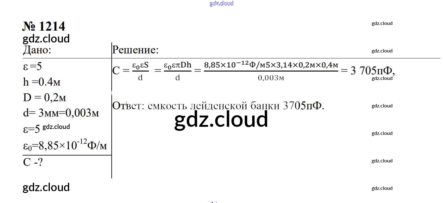 Ответ на задание 1214 Сборник задач Физика за 7, 8, 9 (седьмой, восьмой, девятый) класс Перышкин, Лонцова УМК 2016