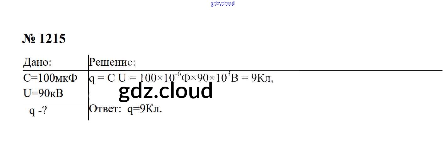 Ответ на задание 1215 Сборник задач Физика за 7, 8, 9 (седьмой, восьмой, девятый) класс Перышкин, Лонцова УМК 2016