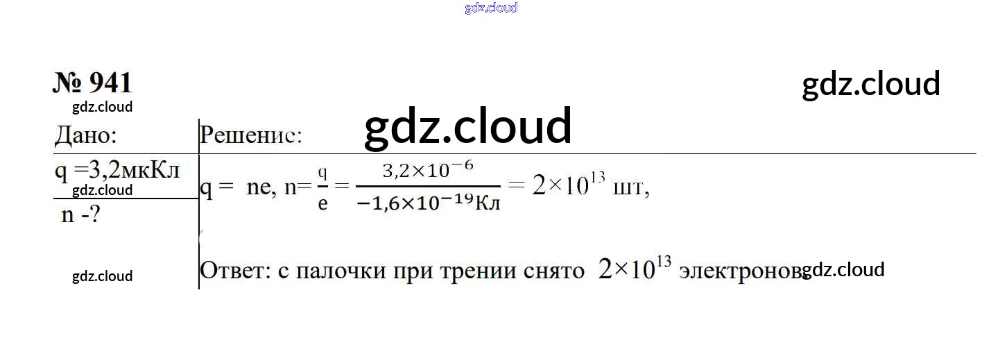 Ответ на задание 941 Сборник задач Физика за 7, 8, 9 (седьмой, восьмой, девятый) класс Перышкин, Лонцова УМК 2016