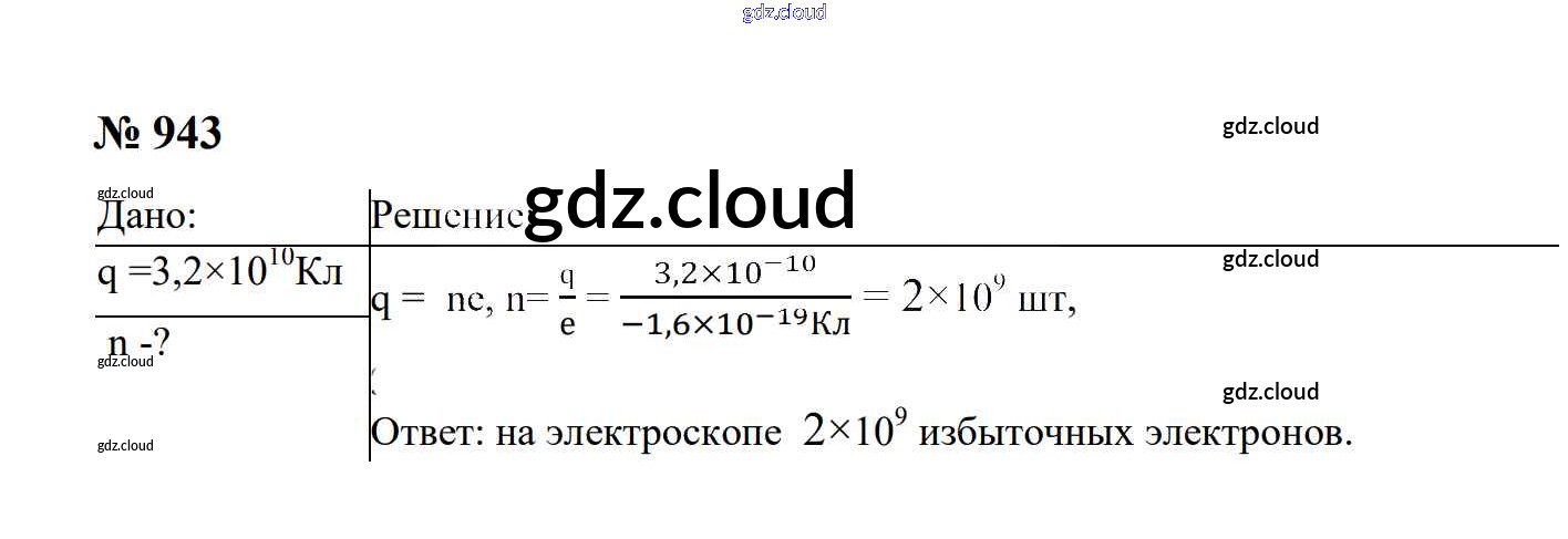 Ответ на задание 943 Сборник задач Физика за 7, 8, 9 (седьмой, восьмой, девятый) класс Перышкин, Лонцова УМК 2016