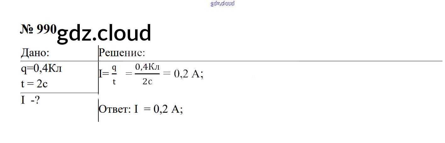 Ответ на задание 990 Сборник задач Физика за 7, 8, 9 (седьмой, восьмой, девятый) класс Перышкин, Лонцова УМК 2016