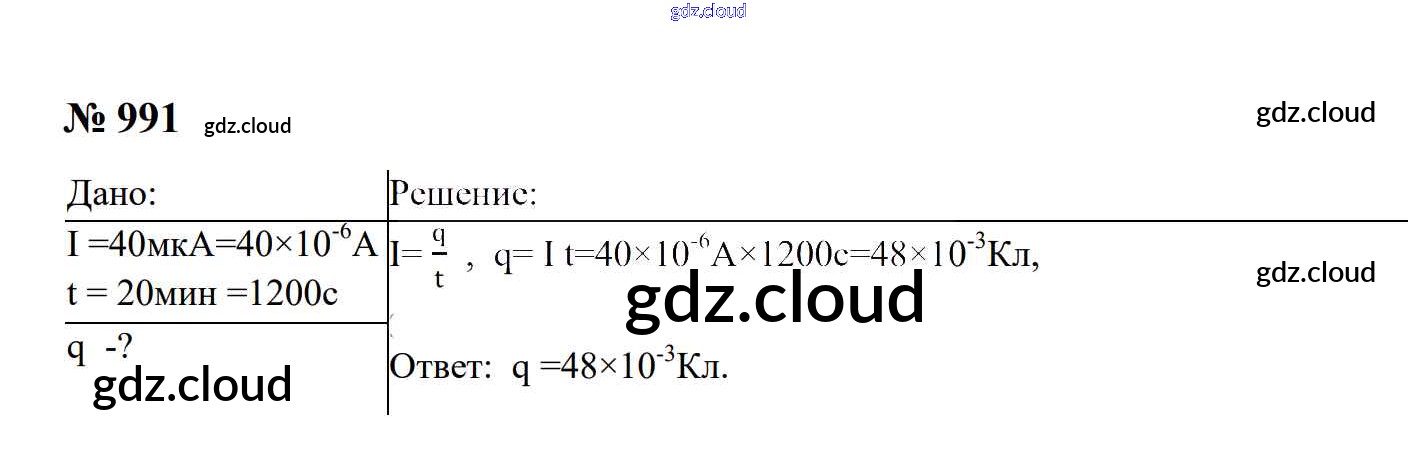Ответ на задание 991 Сборник задач Физика за 7, 8, 9 (седьмой, восьмой, девятый) класс Перышкин, Лонцова УМК 2016