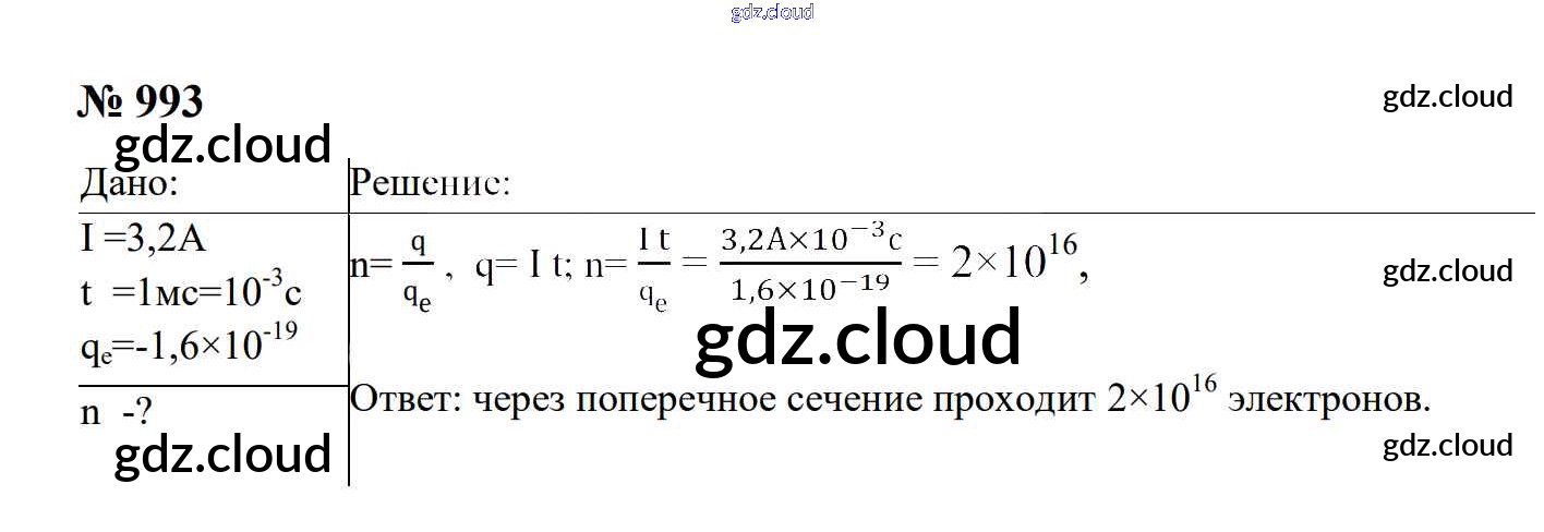 Ответ на задание 993 Сборник задач Физика за 7, 8, 9 (седьмой, восьмой, девятый) класс Перышкин, Лонцова УМК 2016