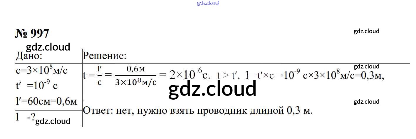 Ответ на задание 997 Сборник задач Физика за 7, 8, 9 (седьмой, восьмой, девятый) класс Перышкин, Лонцова УМК 2016