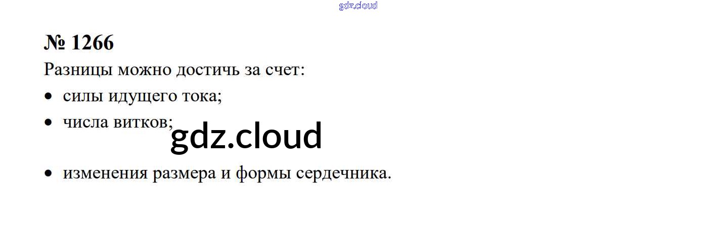 Ответ на задание 1266 Сборник задач Физика за 7, 8, 9 (седьмой, восьмой, девятый) класс Перышкин, Лонцова УМК 2016