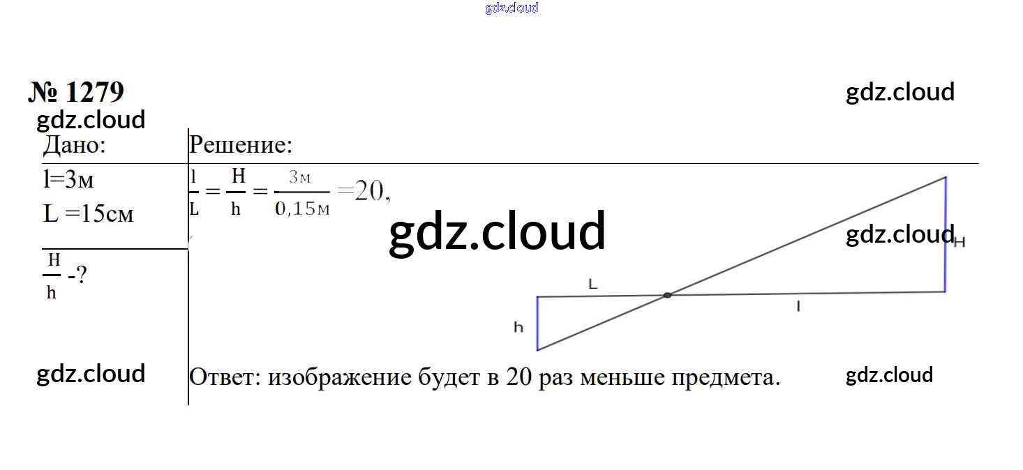 Ответ на задание 1279 Сборник задач Физика за 7, 8, 9 (седьмой, восьмой, девятый) класс Перышкин, Лонцова УМК 2016