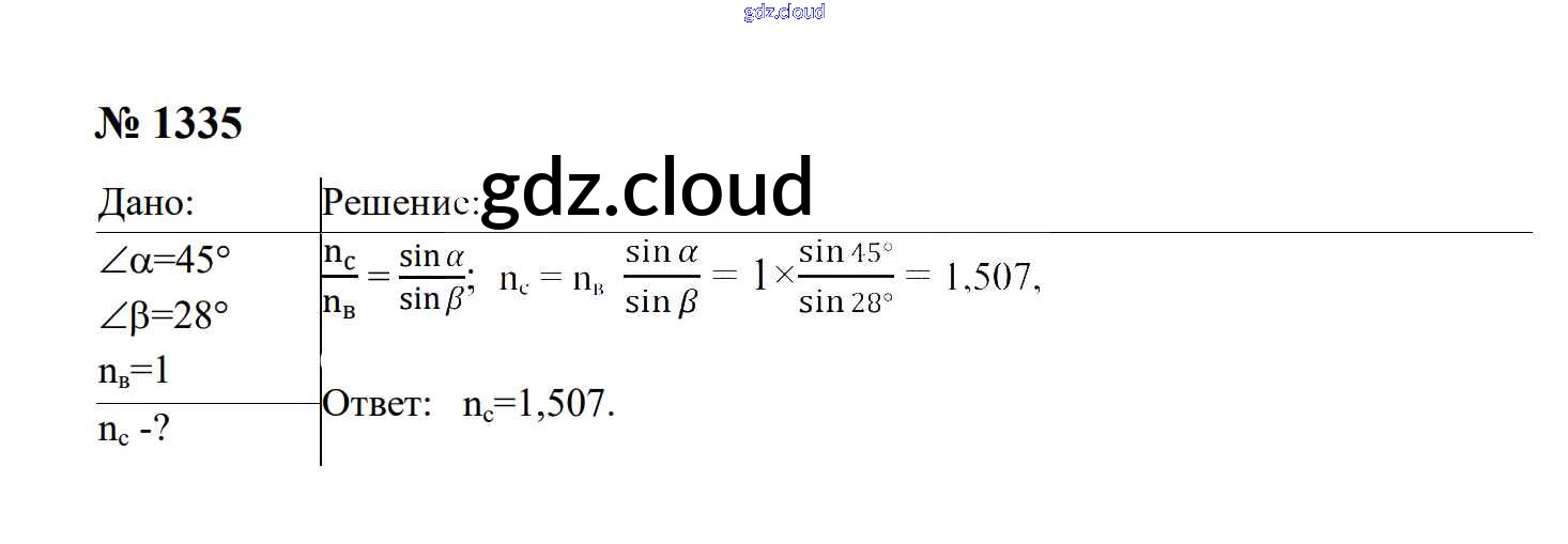 Ответ на задание 1335 Сборник задач Физика за 7, 8, 9 (седьмой, восьмой, девятый) класс Перышкин, Лонцова УМК 2016