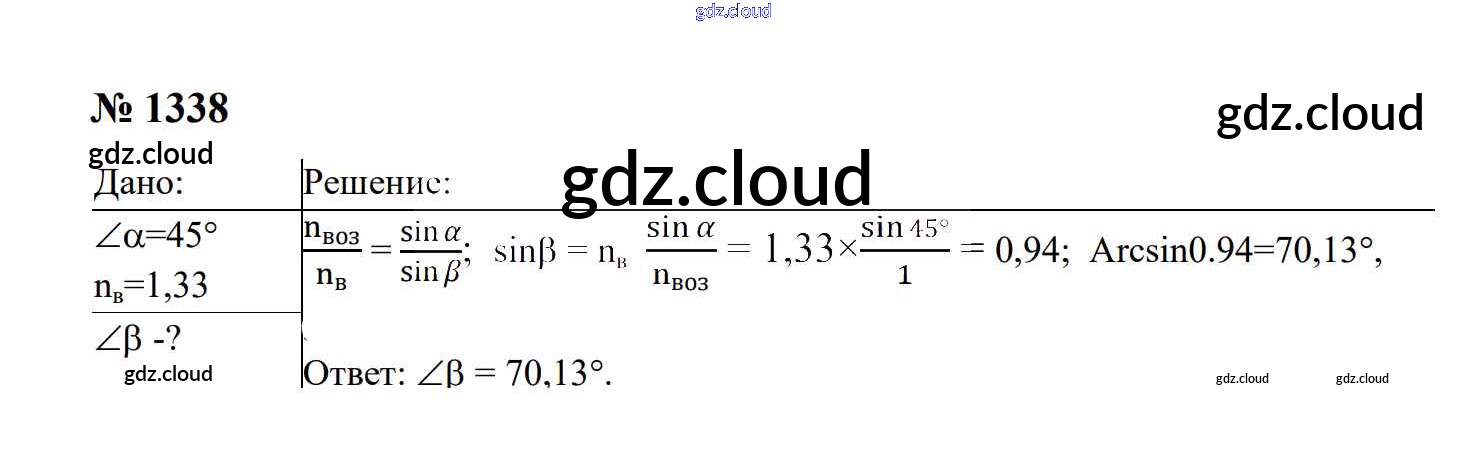 Ответ на задание 1338 Сборник задач Физика за 7, 8, 9 (седьмой, восьмой, девятый) класс Перышкин, Лонцова УМК 2016