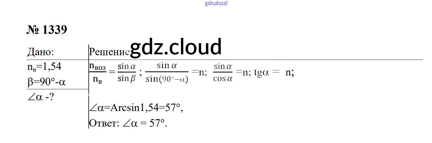 Ответ на задание 1339 Сборник задач Физика за 7, 8, 9 (седьмой, восьмой, девятый) класс Перышкин, Лонцова УМК 2016