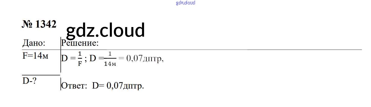 Ответ на задание 1342 Сборник задач Физика за 7, 8, 9 (седьмой, восьмой, девятый) класс Перышкин, Лонцова УМК 2016