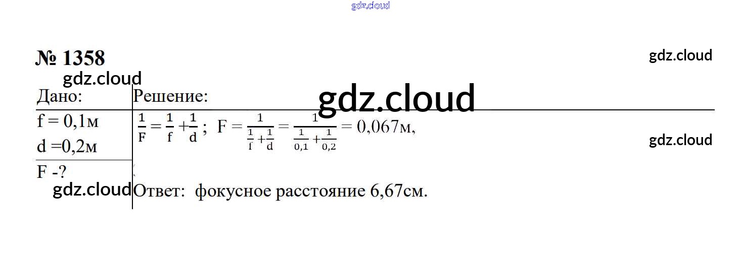 Ответ на задание 1358 Сборник задач Физика за 7, 8, 9 (седьмой, восьмой, девятый) класс Перышкин, Лонцова УМК 2016