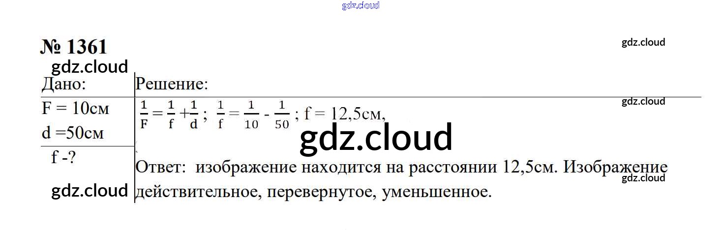 Ответ на задание 1361 Сборник задач Физика за 7, 8, 9 (седьмой, восьмой, девятый) класс Перышкин, Лонцова УМК 2016