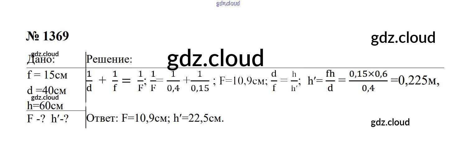 Ответ на задание 1369 Сборник задач Физика за 7, 8, 9 (седьмой, восьмой, девятый) класс Перышкин, Лонцова УМК 2016