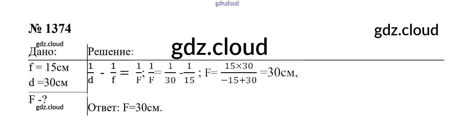 Ответ на задание 1374 Сборник задач Физика за 7, 8, 9 (седьмой, восьмой, девятый) класс Перышкин, Лонцова УМК 2016
