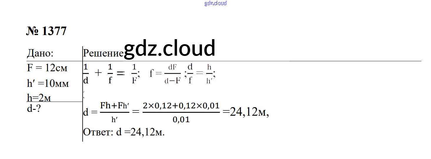 Ответ на задание 1377 Сборник задач Физика за 7, 8, 9 (седьмой, восьмой, девятый) класс Перышкин, Лонцова УМК 2016