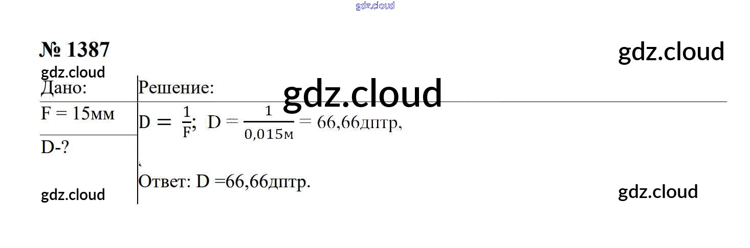 Ответ на задание 1387 Сборник задач Физика за 7, 8, 9 (седьмой, восьмой, девятый) класс Перышкин, Лонцова УМК 2016