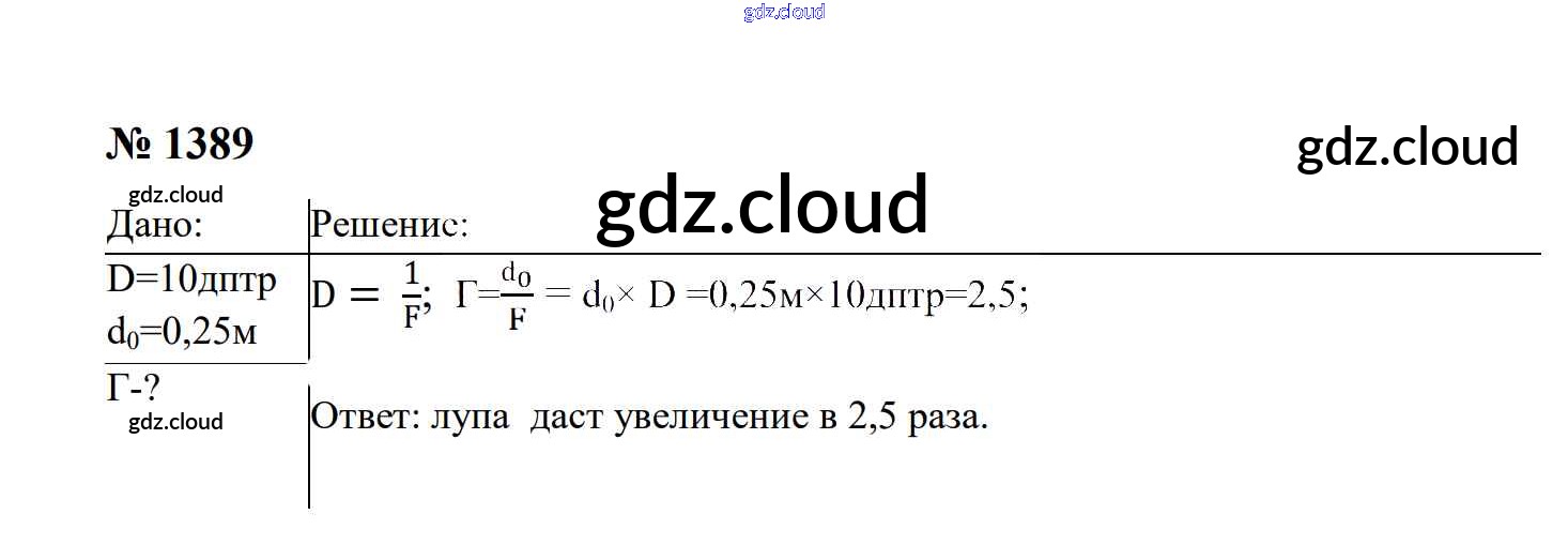 Ответ на задание 1389 Сборник задач Физика за 7, 8, 9 (седьмой, восьмой, девятый) класс Перышкин, Лонцова УМК 2016