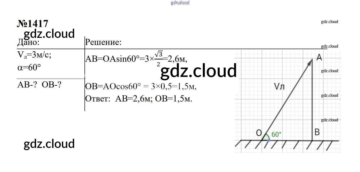 Ответ на задание 1417 Сборник задач Физика за 7, 8, 9 (седьмой, восьмой, девятый) класс Перышкин, Лонцова УМК 2016