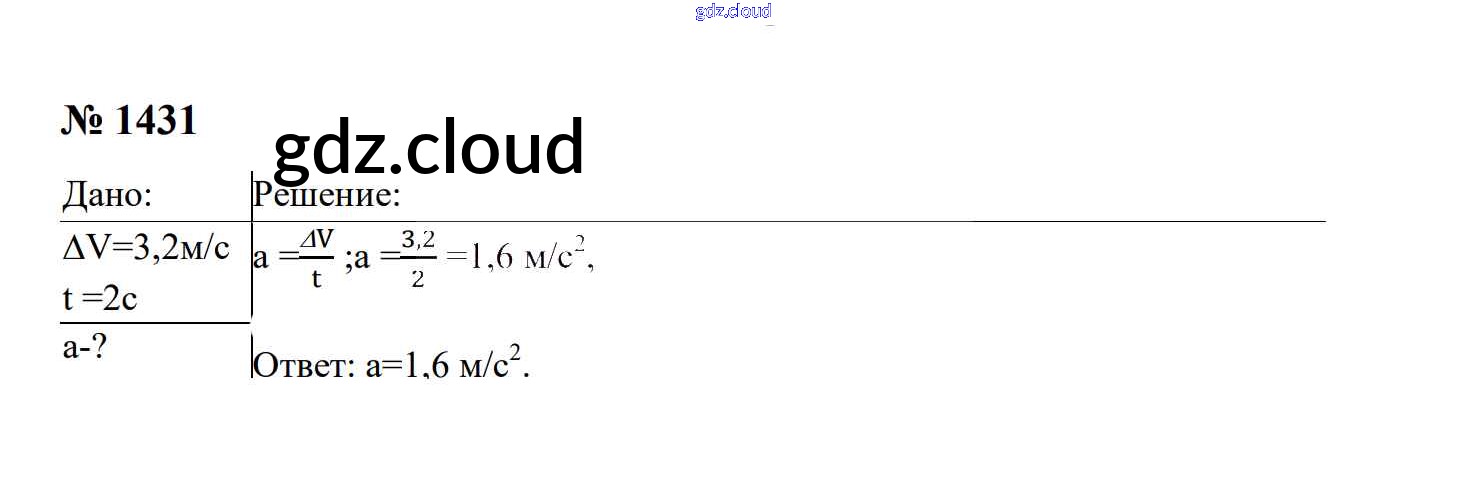 Ответ на задание 1431 Сборник задач Физика за 7, 8, 9 (седьмой, восьмой, девятый) класс Перышкин, Лонцова УМК 2016