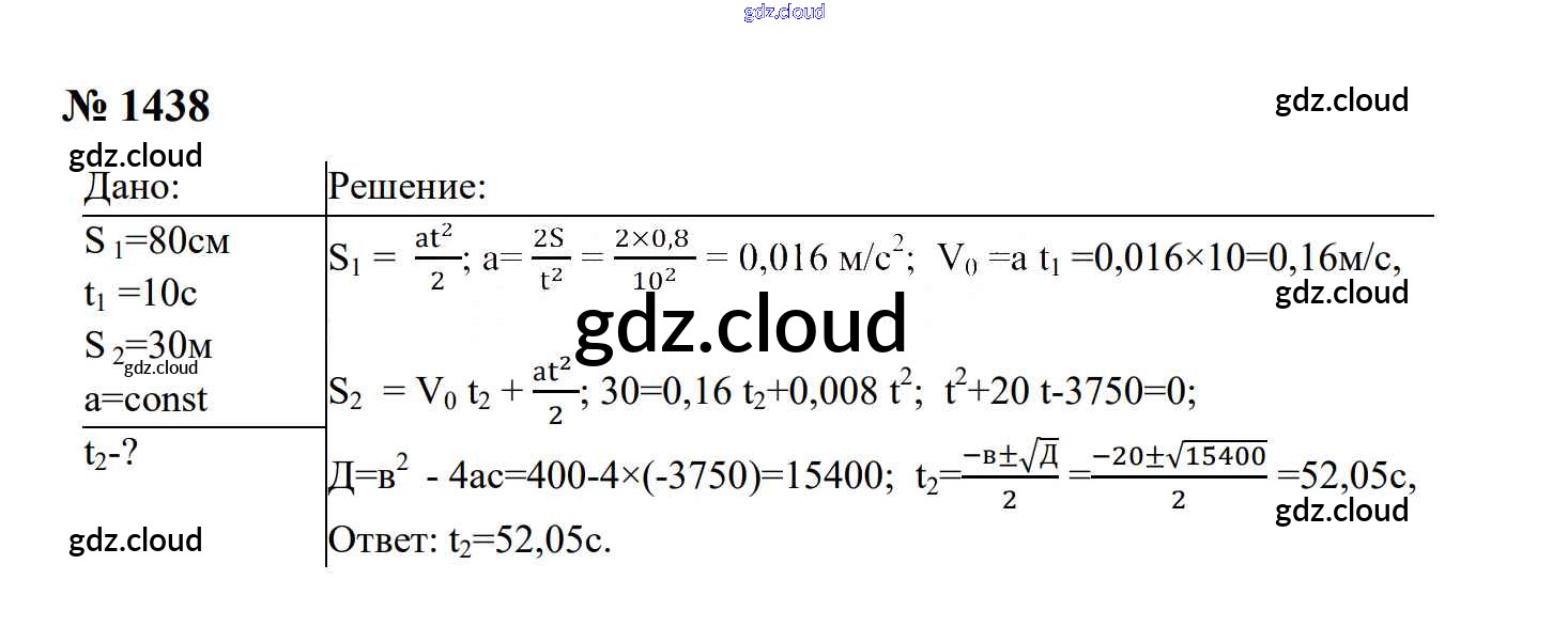 Ответ на задание 1438 Сборник задач Физика за 7, 8, 9 (седьмой, восьмой, девятый) класс Перышкин, Лонцова УМК 2016