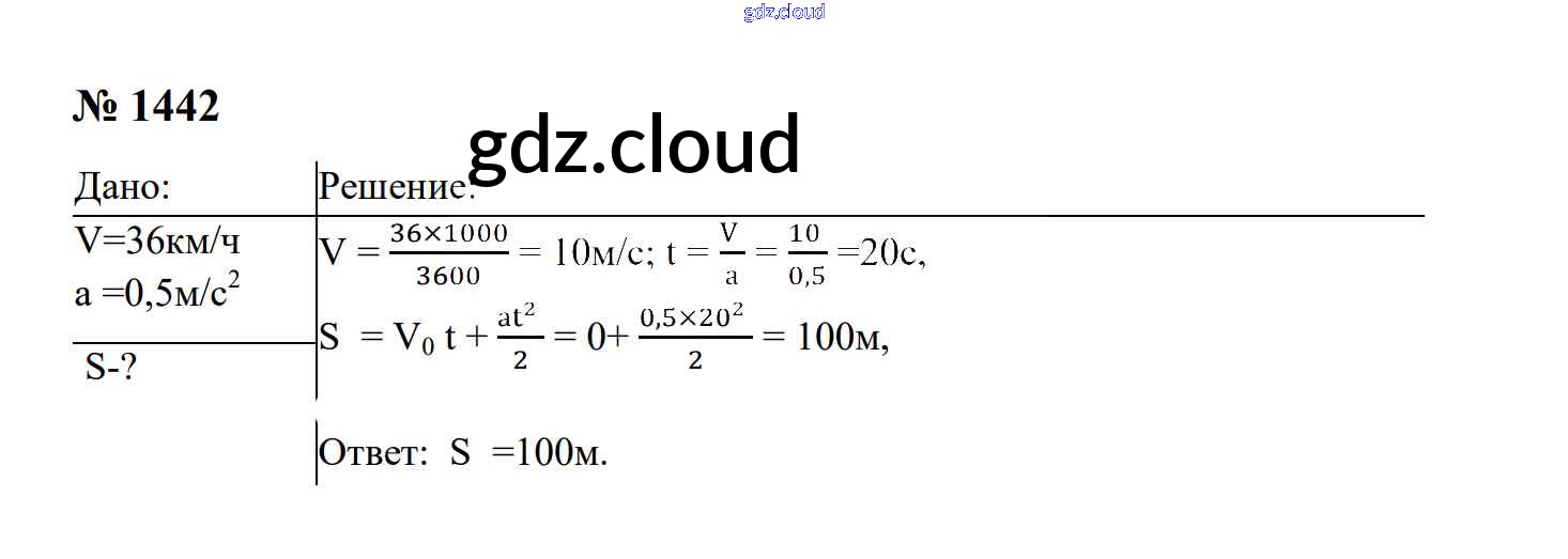 Ответ на задание 1442 Сборник задач Физика за 7, 8, 9 (седьмой, восьмой, девятый) класс Перышкин, Лонцова УМК 2016