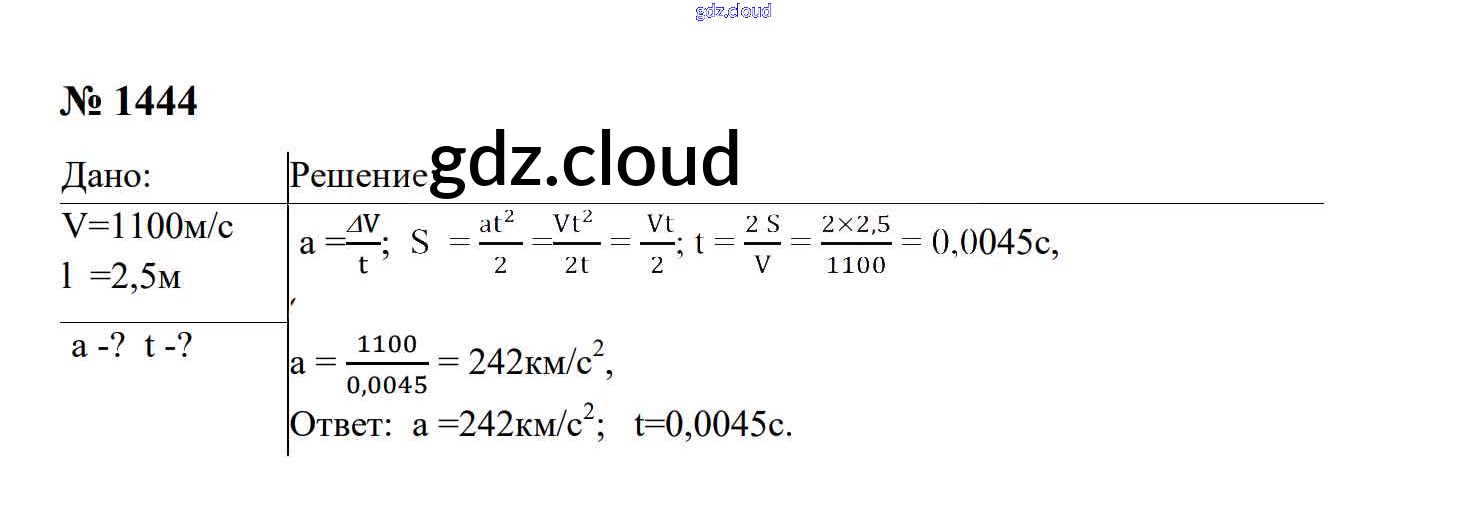 Ответ на задание 1444 Сборник задач Физика за 7, 8, 9 (седьмой, восьмой, девятый) класс Перышкин, Лонцова УМК 2016