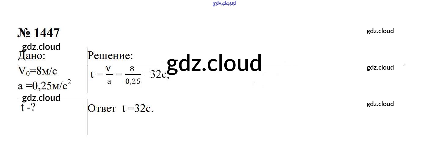 Ответ на задание 1447 Сборник задач Физика за 7, 8, 9 (седьмой, восьмой, девятый) класс Перышкин, Лонцова УМК 2016