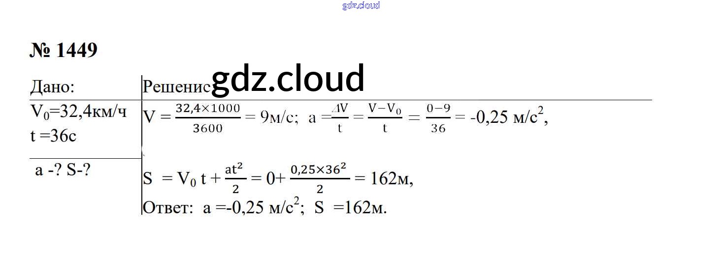 Ответ на задание 1449 Сборник задач Физика за 7, 8, 9 (седьмой, восьмой, девятый) класс Перышкин, Лонцова УМК 2016