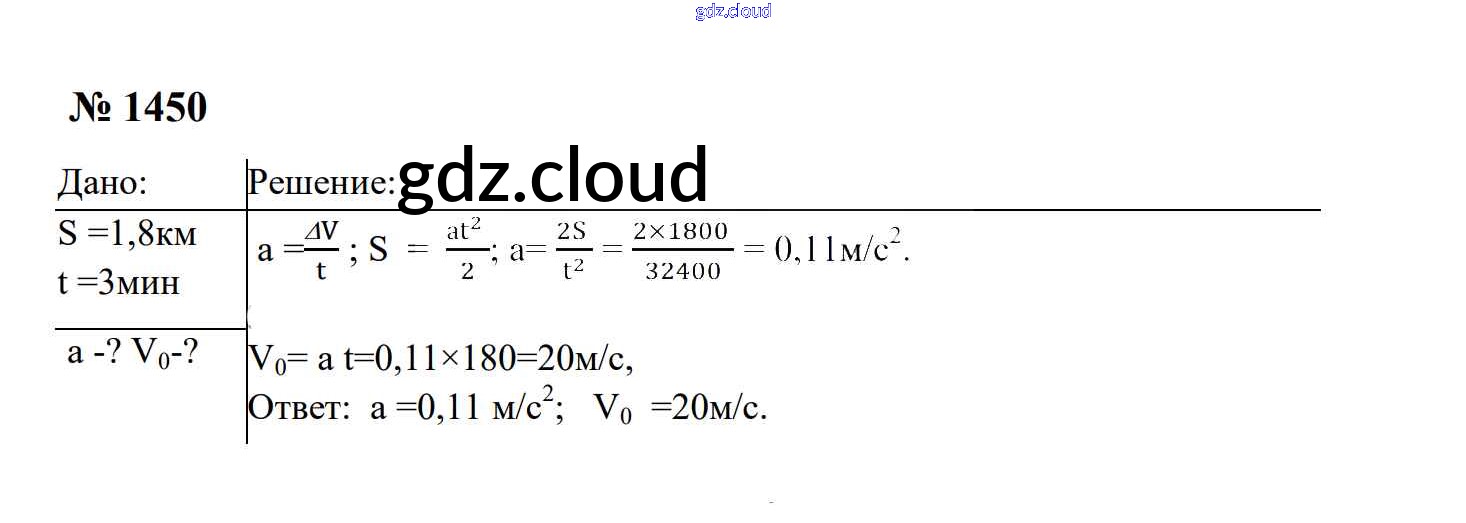 Ответ на задание 1450 Сборник задач Физика за 7, 8, 9 (седьмой, восьмой, девятый) класс Перышкин, Лонцова УМК 2016